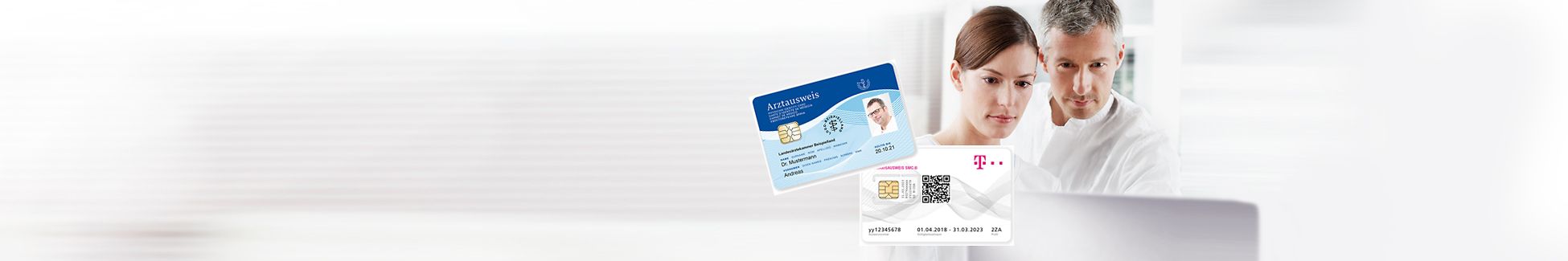 Mit dem Praxisausweis für Ihr Team und Ihrem persönlichen, elektronischen Heilberufsausweis erhalten Sie die Schlüssel für eine sichere Verbindung zur Telematikinfrastruktur.